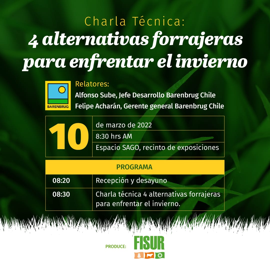 Buscando entregar alternativas a los productores, para enfrentar de buena forma la próxima temporada invernal, la Sociedad Agrícola y Ganadera de Osorno A.G. realizará una charla técnica en conjunto con la empresa Barenbrug Chile, que buscará ilustrar a los productores sobre alternativas de producción de forraje invernal.